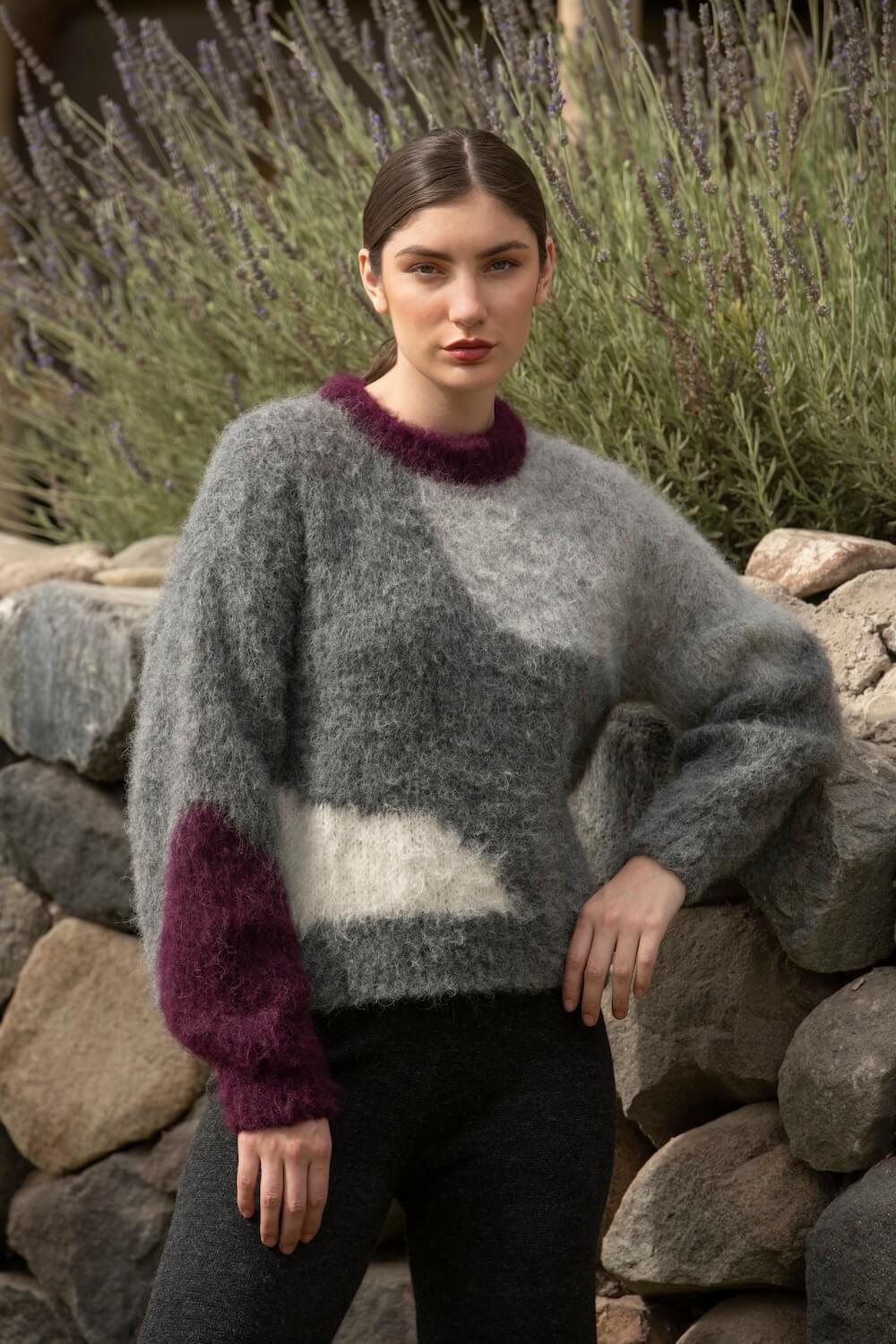 La Chompa Geo es un homenaje a la belleza de nuestro planeta. Inspirada en la geografía y en la silueta de los continentes, su diseño en punto intarsia crea un mapa abstracto que celebra la conexión entre tierra, cuerpo y espíritu.